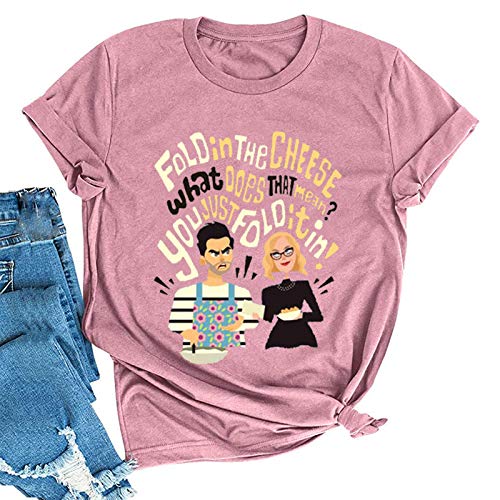 Noffish Women Fold in The Cheese Just Fold It in T-Shirt Funny Graphic T-Shirt (5-Rosy,Medium)